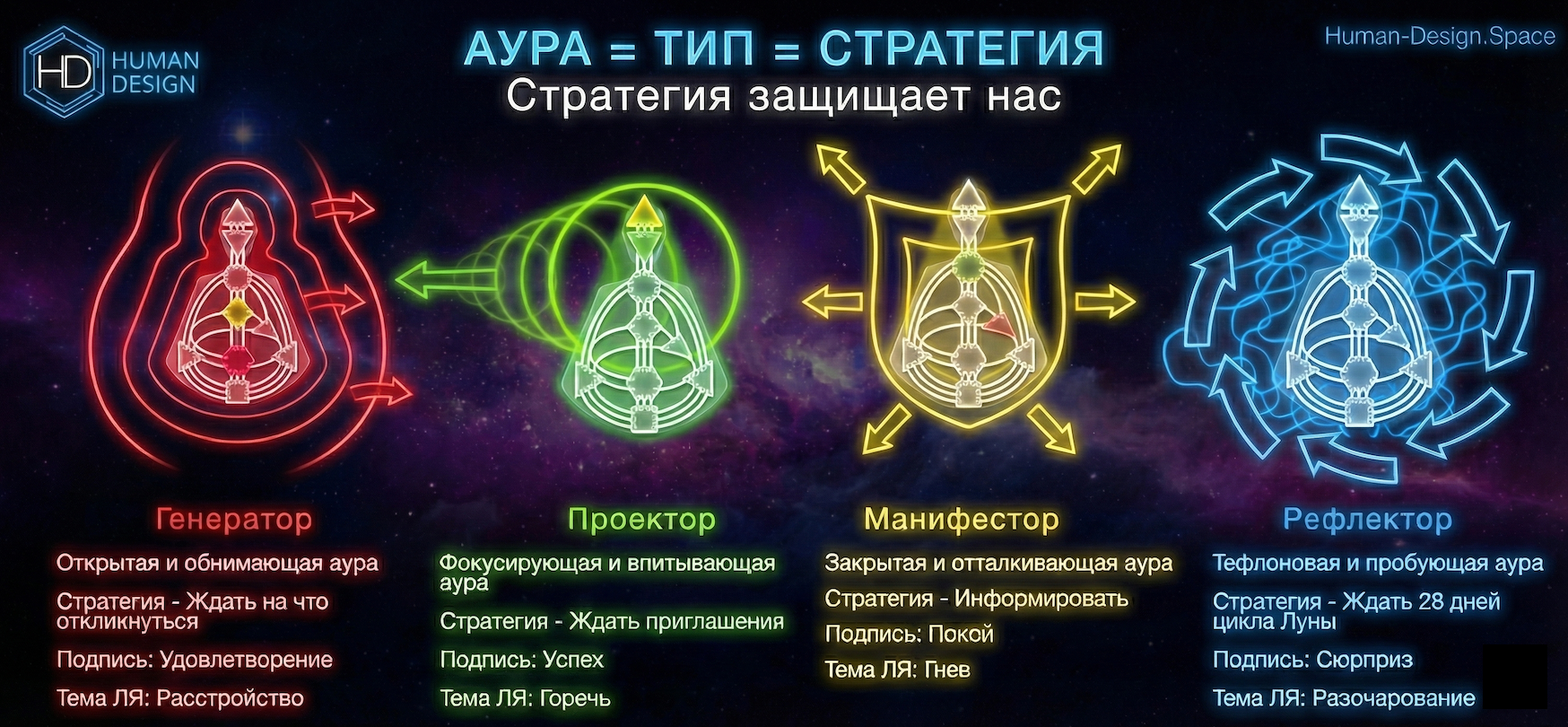 Все четыре Типа делятся на энергетические, к ним относятся генераторы и манифесторы, и неэнергетические – это проекторы и рефлекторы. Условно мир можно разделить на тех, кто дает, и тех, кто получает. Поэтому важно понимать, к какому типу вы относитесь, чтобы правильно использовать свою природную силу и не испытывать разочарований в будущем.