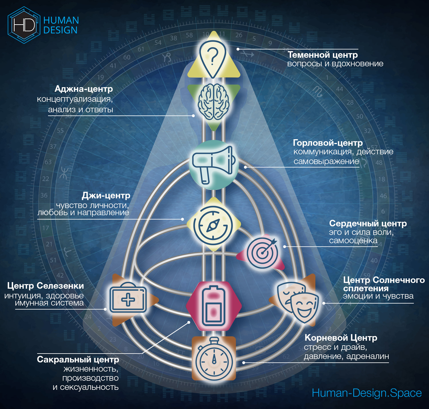 Что такое Каналы: Линии на карте, которые соединяют Центры между собой. Всего их 36, и у каждого человека активированы только некоторые. Каждый Канал — это конкретная способность: к организации, к заботе, к лидерству, к глубокому анализу и так далее.